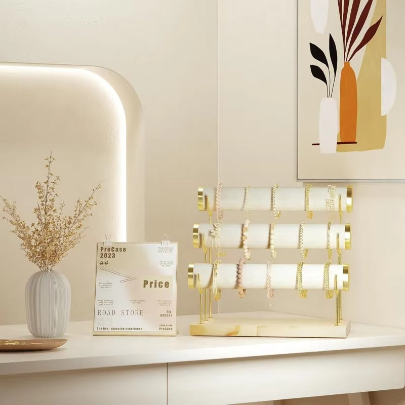 Bracelet Holder Display Bracelet Organizer Stand, Gold Detachable Bangle Storage Rack, Velvet Wrap Watch Holder with Wooden Base